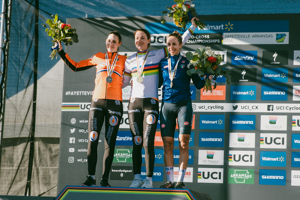 Na vertente feminina, a história começa a ser contada apenas em 2000, em Sint-Michielsgestel, nos Países Baixos. O privilégio de ser a primeira campeã do mundo feminina de ciclocrosse coube à alemã Hanka Kupfernagel, que acabaria por vencer a competição mais duas vezes (01’ e 05’). De registar o ano de 2003, ano da presença portuguesa nos Campeonatos do Mundo, em Monopoli, através de Isabel Caetano. No entanto, falar de ciclocrosse feminino é falar de Marianne Vos. A neerlandesa, considerada a melhor ciclista de todos os tempos, detém o record de camisolas coloridas, com um total de oito (06’, 09’, 10’, 11’, 12’, 13’, 14’ e 22’). De salientar também o nome de Pauline Ferrand-Prevot, que, com a vitória em 2015, conseguiu arrecadar camisolas do arco-íris na estrada, BTT e ciclocrosse. Sanne Cant foi tricampeã entre os anos de 2017 e 2019; 2020 foi a vez de Ceylin Del Carmen Alvarado; Lucinda Brand conseguiu finalmente o ouro em 2021, e o ano passado, em Fayetteville, foi Vos, oito anos depois, a conquistar novamente o título mundial.