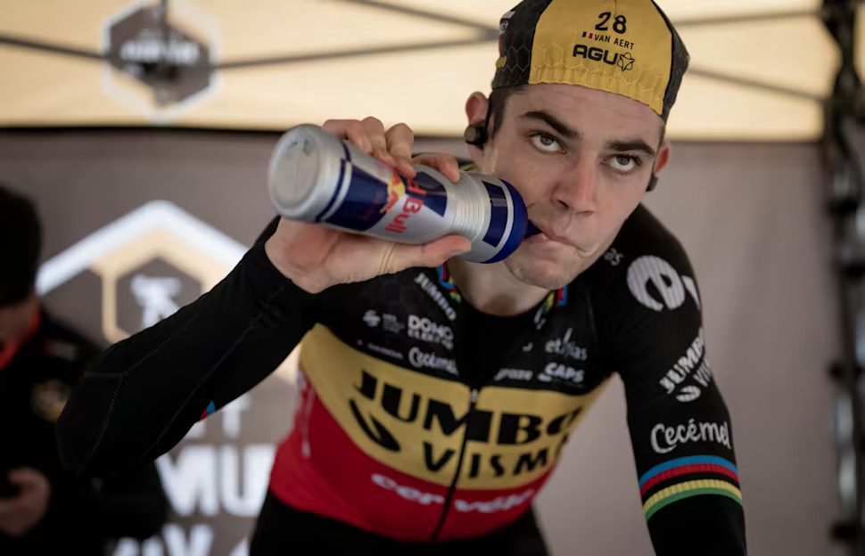 Estávamos [Jumbo-Visma] em estágio em Alicante, em Espanha, e os ciclistas saíram para treinar, como fazem todos os dias, por volta das 9:30 da manhã. Certo dia, antes do treino, o Wout Van Aert vinha com um Red Bull na mão e eu, a brincar com ele, disse-lhe ‘não precisas disso, já tens força suficiente!’ Ele olhou para mim, enquanto se ria da piada que eu tinha acabado de dizer, e pediu-me para gravar um vídeo dele a abrir e a beber o Red Bull. Assim o fiz, ele abriu o Red Bull e levou-o à boca, depois parei o vídeo e ele disse-me ‘se fosse mais tarde até bebia isto, mas ainda é muito cedo, por isso não vou beber agora’. Ele olhou para mim e disse ‘pega, bebe tu!’. E eu ‘às 9 da manhã vou beber um Red Bull?’ Enquanto lhe devolvia o telemóvel, ele deu-me na outra mão o Red Bull e ficou a olhar para mim. Eu disse-lhe ‘Ok, não tenho problema em beber isso agora, até estou a precisar de energia extra esta manhã!’. E claro que bebi.