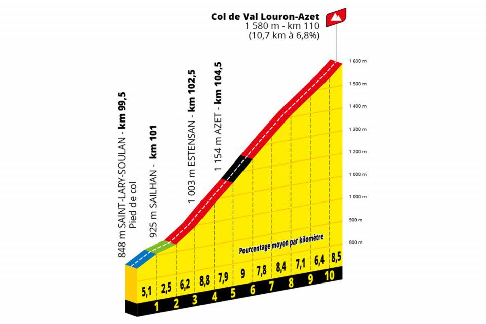 O Col d’Aspin será a primeira dificuldade do dia, no entanto estando tão longe da meta não deverá causar diferenças de vulto, sendo que a Hourquette d’Ancizan ao ter uma zona em ligeira descida também não será propícia a mexidas. A etapa deverá começar a ser decidida no Col de Val Louron-Azet que é uma subida constante, mas que poderá ser o ponto escolhido para os primeiros grandes ataques dos homens da geral, visto que ninguém poderá deixar as decisões para Peyragudes para recuperar tempo perdido. Esta subida será o ponto ideal para Tadej Pogačar mostrar se está com capacidade para bater Jonas Vingegaard, o dinamarquês tem estado exímio e será muito difícil de ser batido pelo esloveno.