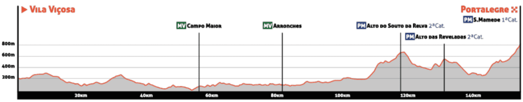 No sábado vai ser dia de etapa rainha. Os quilómetros nem são muitos e o início vai ser calmo, com duas metas volantes instaladas em Campo Maior (km 56.6) e Arronches (km 79,8), mas a partir daí o nível de dificuldade vai ser elevado… sempre a subir. São três os prémios de montanha que os ciclistas vão ter de enfrentar: o primeiro localiza-se no Alto do Souto da Relva, uma subida de 2ª categoria, ao quilómetro 110,5; o segundo coincide com o Alto das Reveladas, também de segunda categoria, ao quilómetro 129,3; e, por fim, o último diz respeito às Antenas de São Mamede, uma subida de 1ª categoria e onde a corrida termina. Esta etapa promete grande espetáculo, com vários ataques ao longo de todo o percurso, mas com um grupo reduzido a lutar pela etapa… grupo que deve ter os ciclistas que melhor posicionados vão ficar na classificação geral.