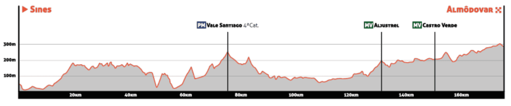 1.ª Etapa (quarta-feira 25/03): Sines – Almodôvar (173,7 quilómetros)